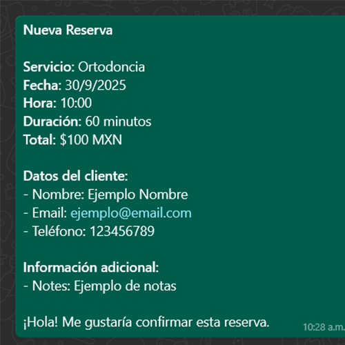 Sincronización con tu WhatsApp para recibir las confirmaciones de citas y el servicio agendado.